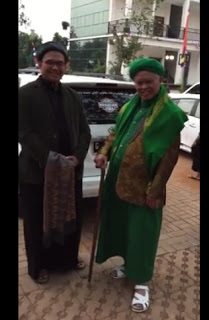 Pangersa Abah menunjuk ke stiker Harley Davidson yang tulisannya dimodifikasi secara apik menjadi PENCINTA KESUCIAN JIWA yang menempel di mobil Toyota Fortuner bernopol G 405 SM milik Pangersa.